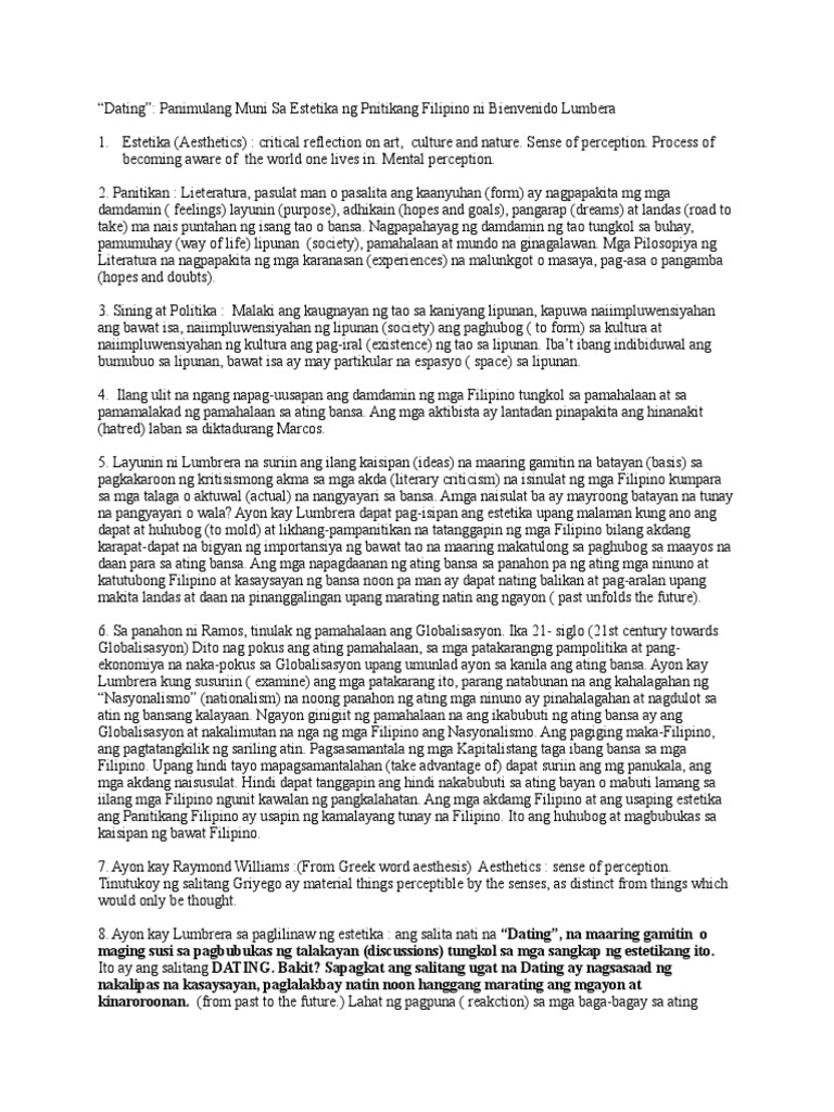 Dating Panimulang Muni Sa Estetika Ng Panitikang Filipino Ni Bienvenido Lumbera