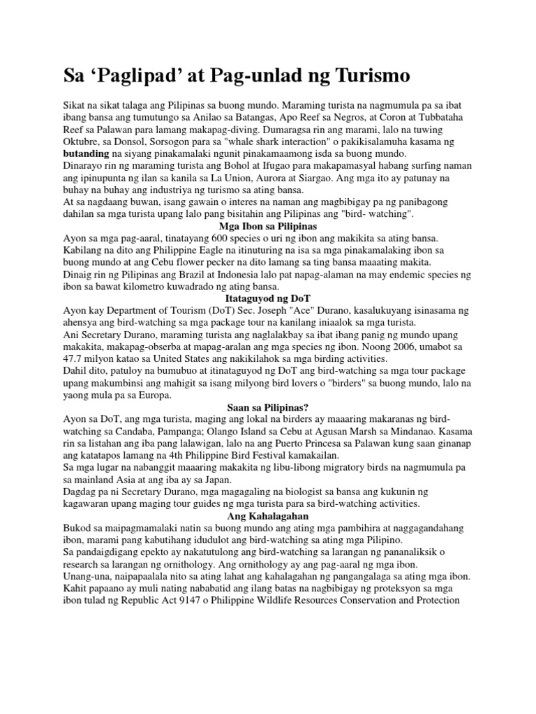 Dahil sa turismo mas nagiging kilala ang ating bansang Pilipinas. 04-02-2021 Dumadaan ang pagsusuri ng pambansang badyet sa sangay na ito Gawain C. Malaking bagay ang naiaambag ng turismo sa kaunlaran ng isang bansa.