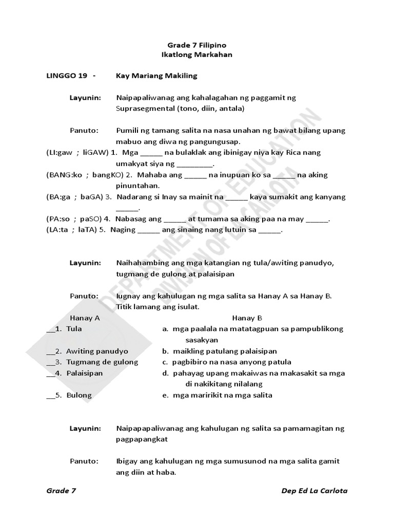 DRILL 1A Q3 FIL 7 WEEK 2. Tell us what you think abut this post by leaving your comments below. Paghahambing ng mga katangian ng tulaawiting panudyo tugmang de gulong at palaisipan.
