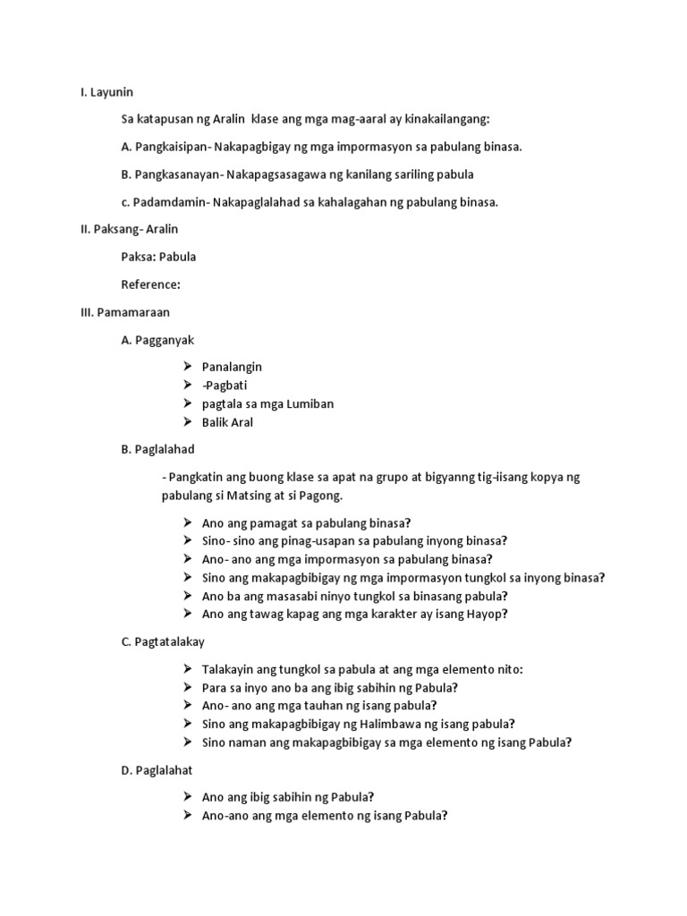Ano ang maidudulot ng isang pabula sa buhay ng tao. Ito ay ang tauhan tagpuan banghay at aral. 33 found this document useful Mark this document as useful.